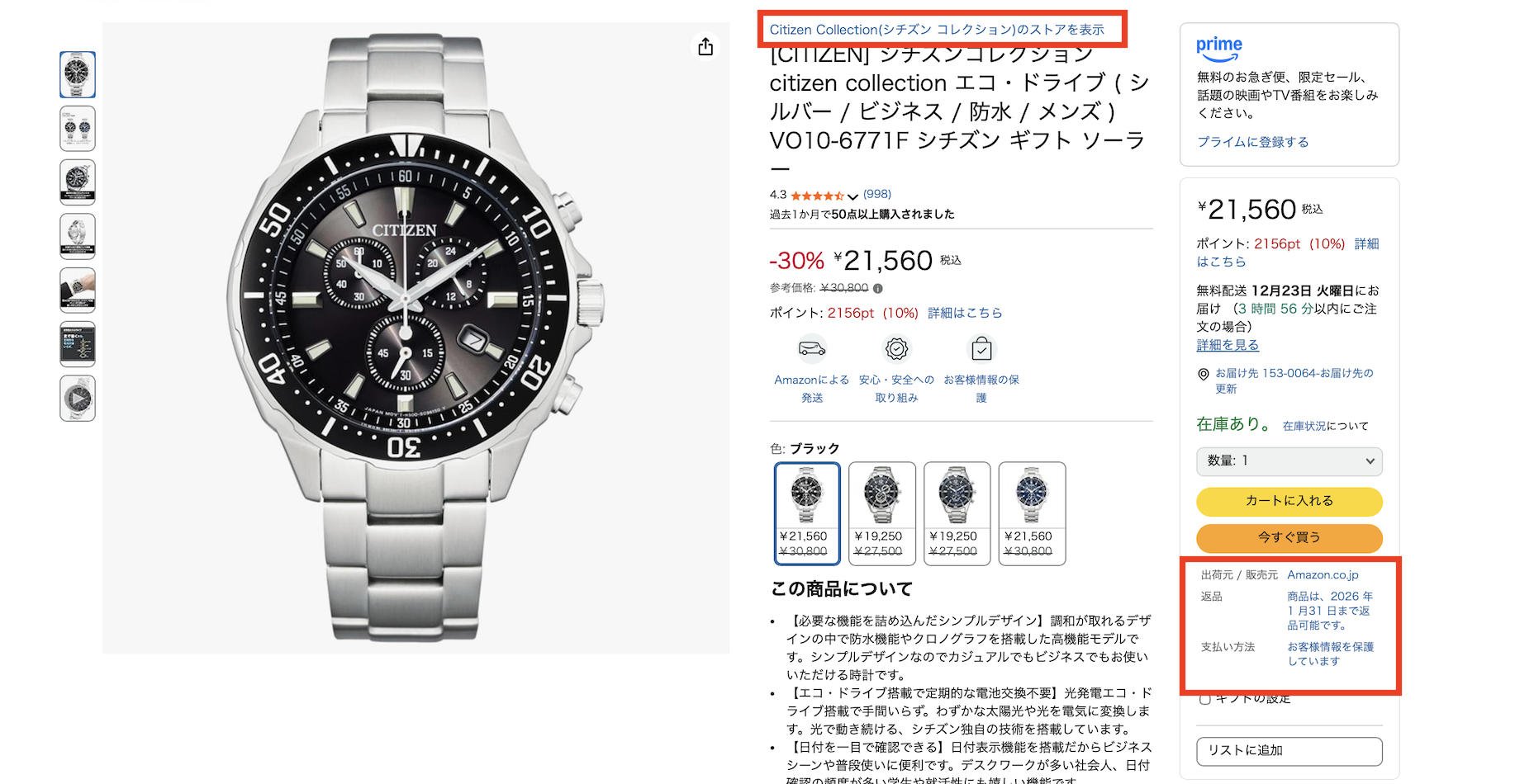 CITIZEN × Amazon(専用ストア・Amazon販売)という条件下では話が別です。